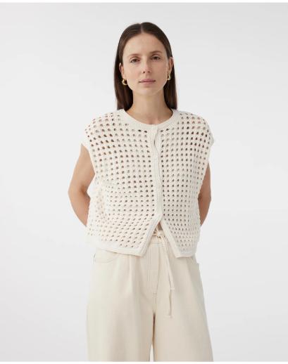 Tanya is a delightfully airy cardigan, perfect for sunny days. Her crocheted design and subtle ribbed edges give her a unique, summery look.