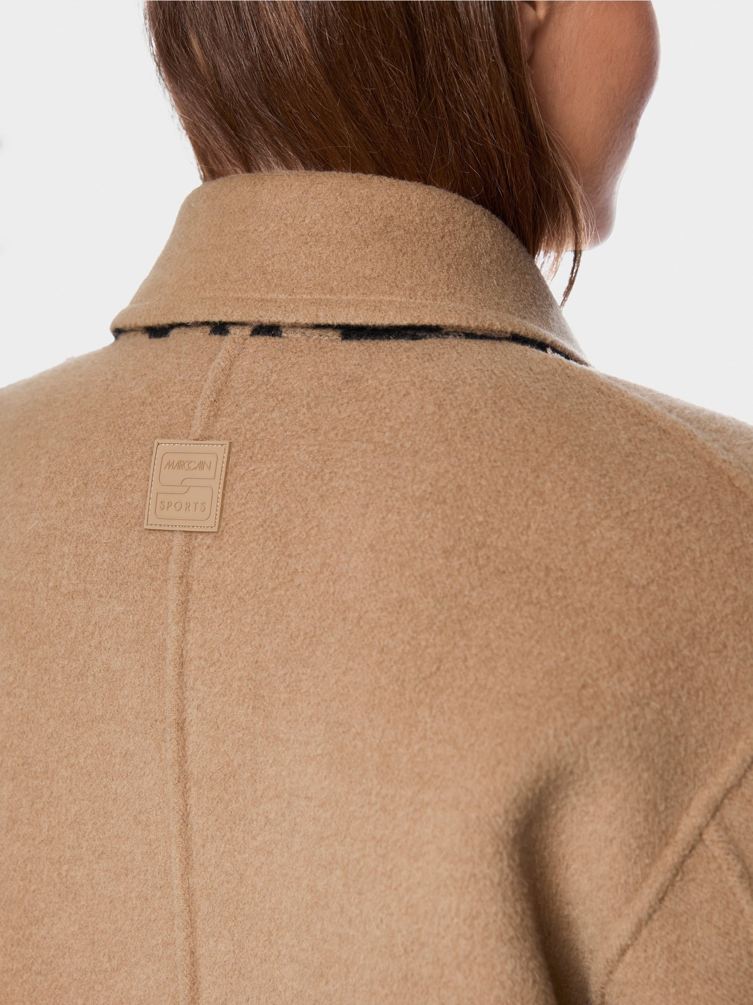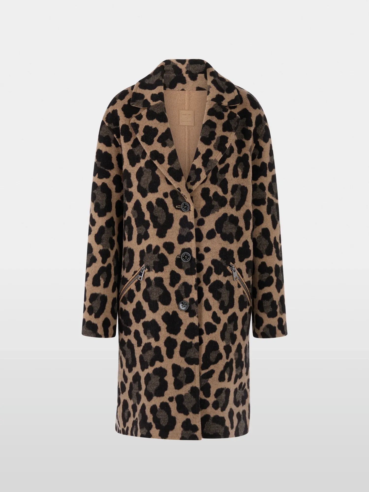 This reversible coat from Marc Cain is camel colour on one side and leopard print on the other. Two button closure with zip pockets.