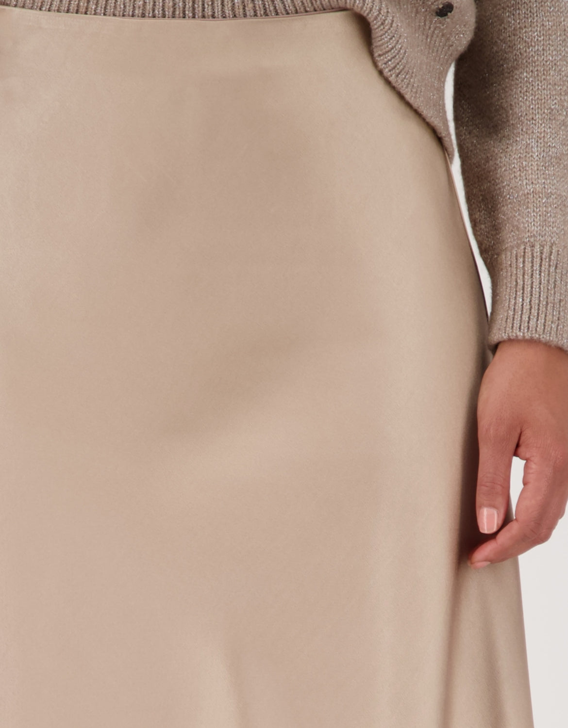 Elegant Truffle colour midi-length satin skirt made from a stretchy material that falls flowingly, with a comfortable waistband – for a chic appearance.