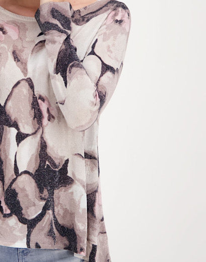 The floral pattern with flared hem, round neckline and long sleeves ensures comfortable wearing. Round neckline Made of flowing viscose, polyamide and silver yarn.