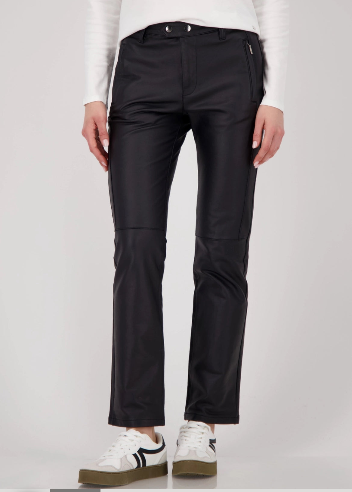 Fashionable straight-leg leather-look trousers made from a high-quality cotton blend with stretchy material, handy side pockets with zip and a press stud fastener for a fashionable fit.