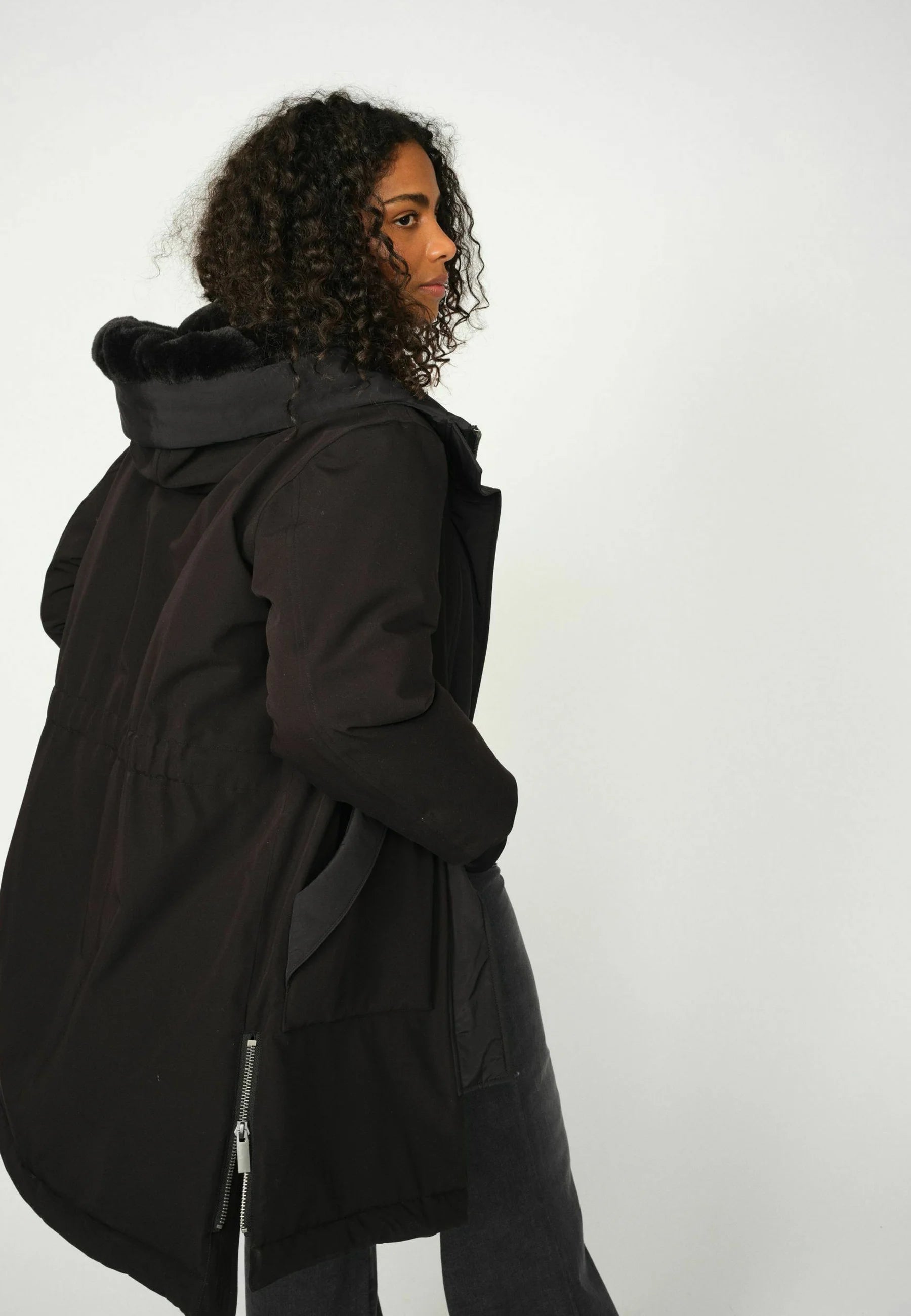 Wrap yourself in warmth and style with this long, cosy coat, featuring a practical hood and a concealed front closure for a clean, modern silhouette. The elasticated waistband creates a flattering shape, while the zipper slits at the sides allow for easy movement and versatility. Insulated with ETHERMALOFT®, an advanced heat fibre technology that retains warmth by absorbing and converting energy like sunlight, this coat is the perfect companion for colder days.