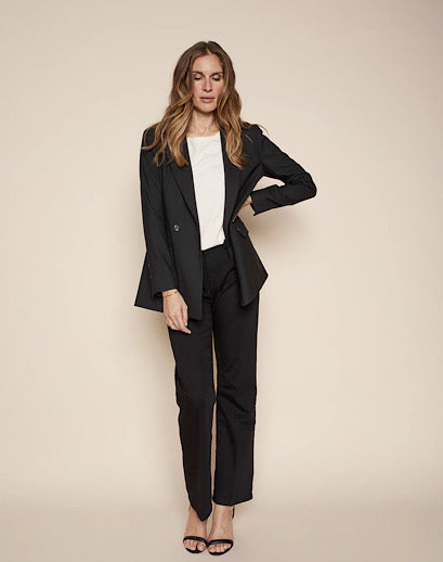 Love a trendy silhouette? Then these jeans might be the right ones for you. They are cut in a boxy fit with cropped length and mid-rise. They are designed with pressed creases and visible stitching that looks great against the blue denim. We like it with a sweater for a day off or with a feminine shirt for a gorgeous office look.