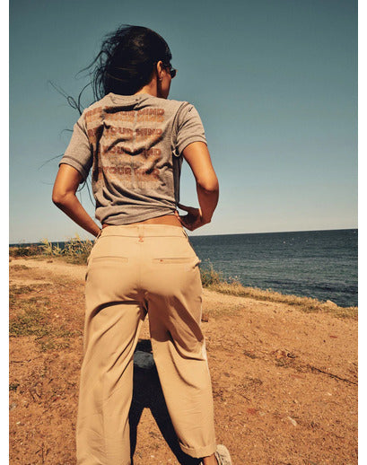 Sporty pants with tape details down the sides, engineered seams, and brick-coloured stitching details. The turn-up hem has got an overlock finish, while the elasticated front waistband ensures the perfect fit.