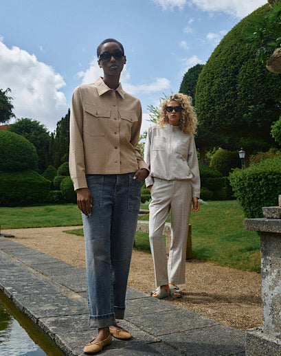 Elevate your wardrobe with this cool, slightly cropped shirt in a boxy fit. Featuring brown buttons, a sharp collar, and slanted chest flap pockets, it brings a modern edge to any outfit. Pair it with the matching pants or style it with light blue denim and sneakers for a laid-back vibe.
