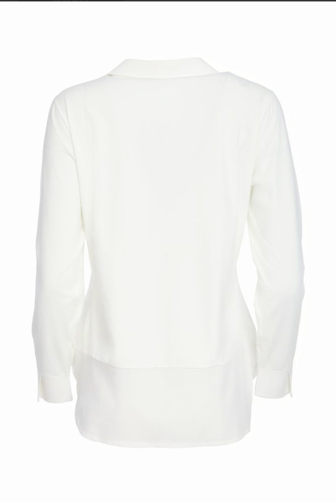 BUILDING BLOCK; If you like a lightweight full sleeve blouse look to the NAYA blouse with a jersey hem panel. The ultra soft panel allows you to wear it out or tucked in without adding bulk.