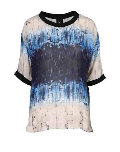 This blouse features a cool, artistic print that adds a fresh twist to any wardrobe. It's super easy to match with a pair of classic jeans or a simple skirt for a casual yet stylish look.