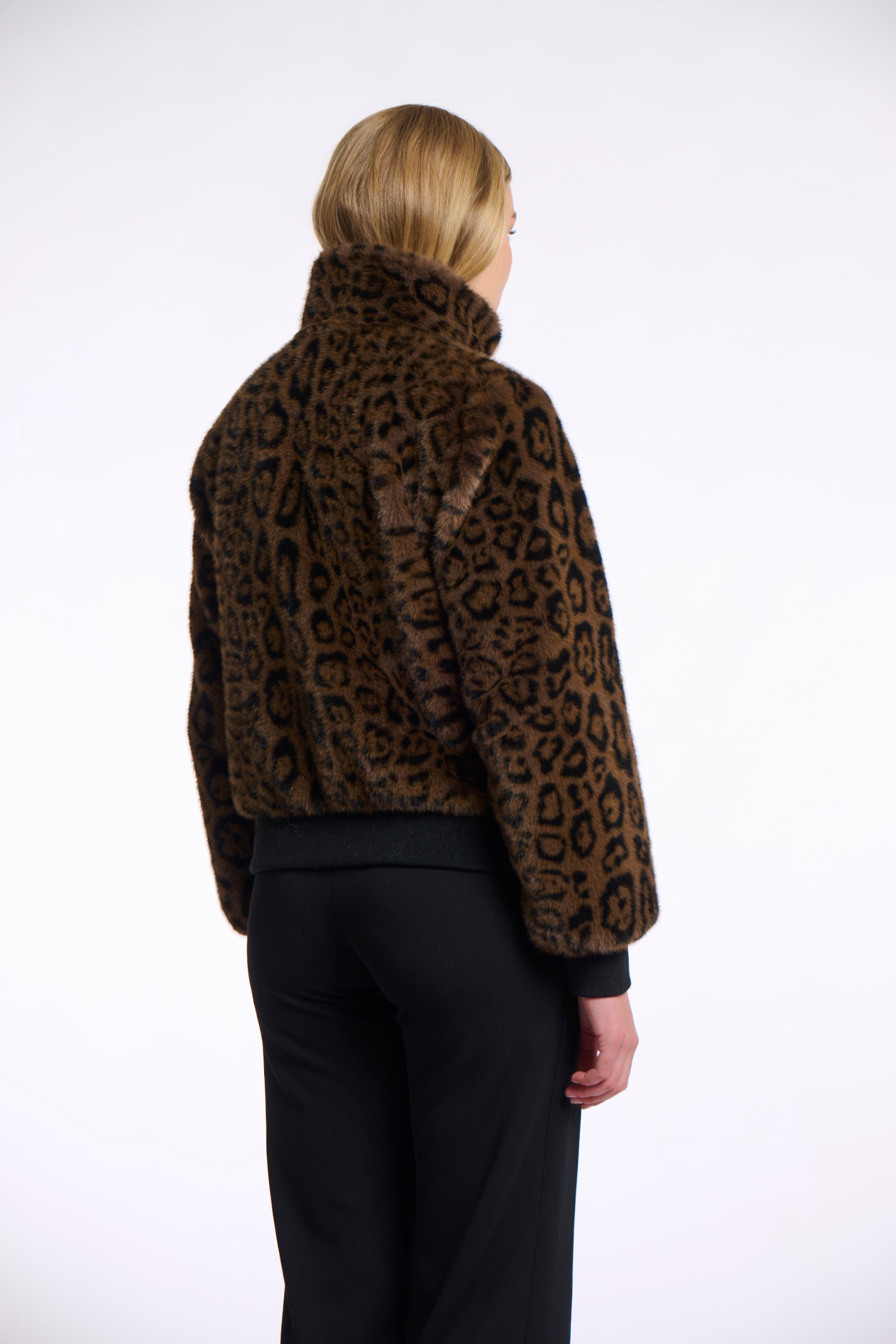 Ambra Faux Fur Jacket Leopard BROWN MIX