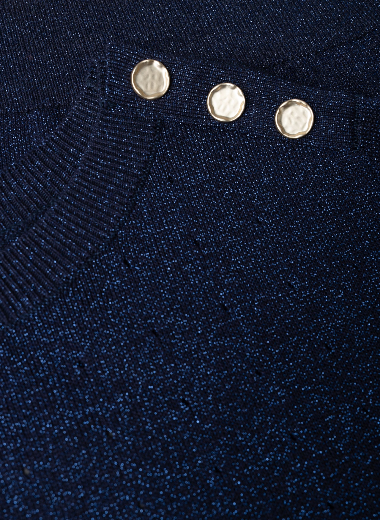 This top stands out for its fine, open-knit structure and lightweight knit. Made from viscose, metallized fibre and nylon, it feels soft and lightweight. The shoulder buttons add a subtle yet stylish touch to this comfortable item.
